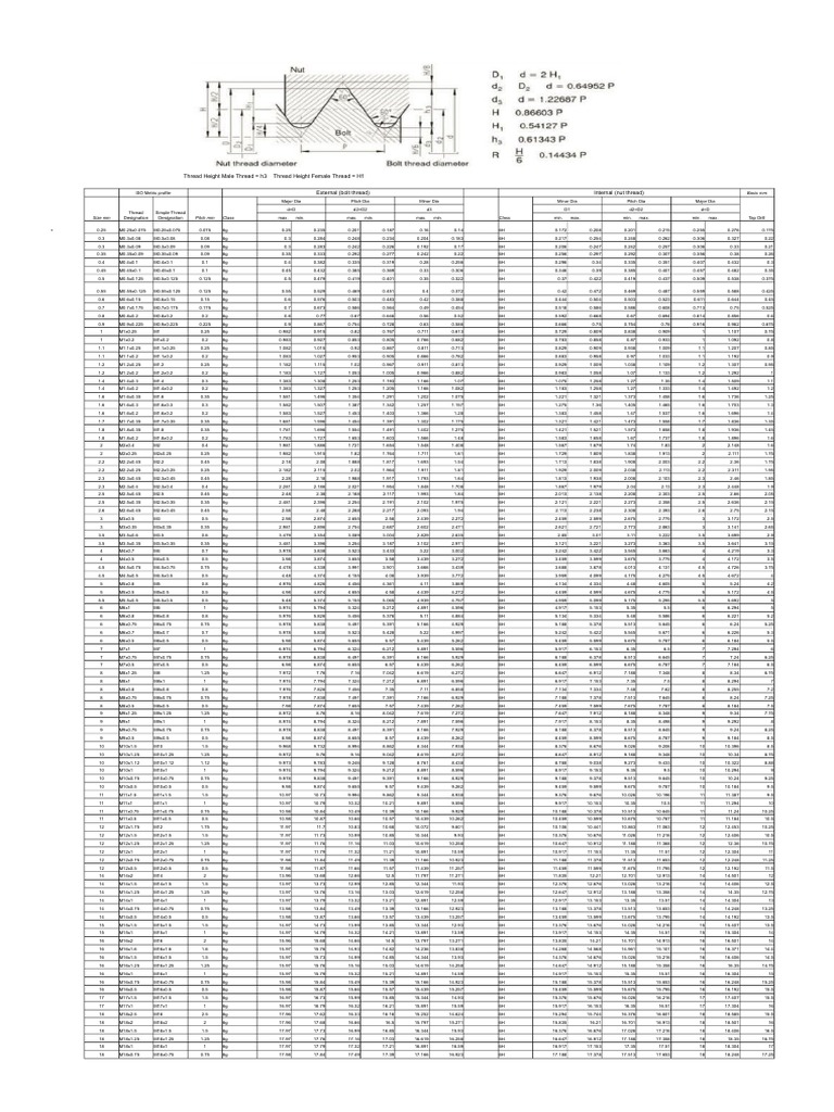 Thread Sizes Metric PDF Cutting Tools Building Materials